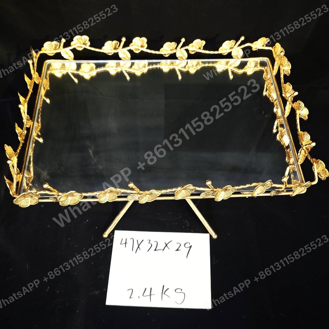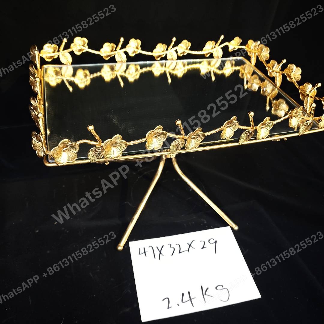 Elegant gold-plated tray, perfect for Islamic gifts. Dimensions 47x32x29 cm, weight 2.4 kg. Minimum order quantity (MOQ) available for bulk orders.MOQ:50