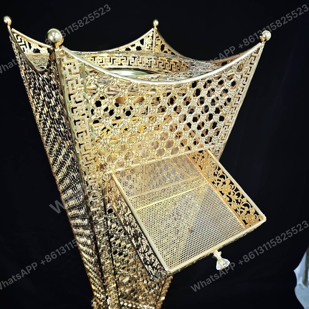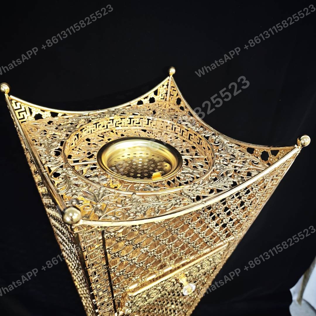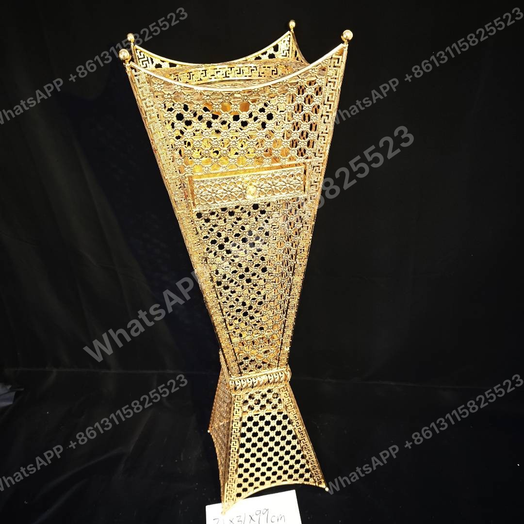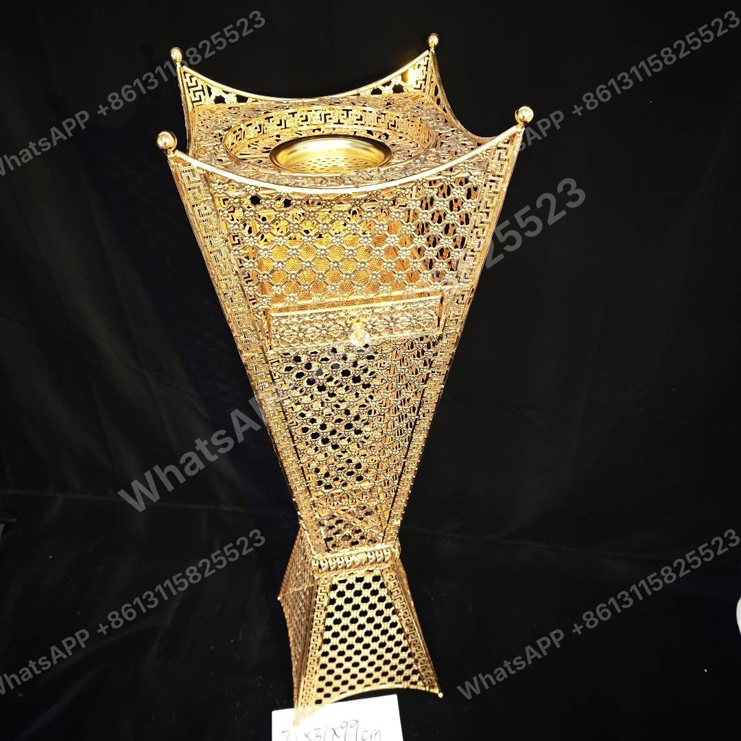 This elegant mabkhara incense burner is crafted from gold-plated zinc alloy, perfect for enhancing your Islamic gift sets. Factory direct, we offer wholesale prices with a minimum order quantity (MOQ) of 20 units for bulk orders.