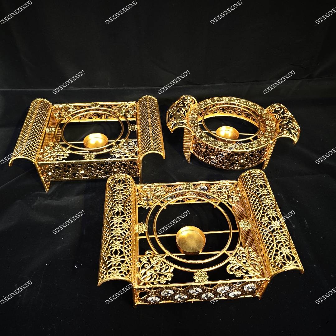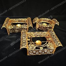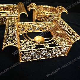 This exquisite mabkhara incense burner set is crafted from zinc alloy with gold plating, perfect for Islamic gifts. Ideal for wholesale buyers, with a minimum order quantity (MOQ) of 50 units for bulk orders.